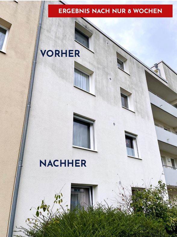 Der Zeitrahmen für den Reinigungsprozess variiert: Je nach Algenart und Verschmutzungsgrad kann es wenige Wochen bis hin zu mehreren Monaten dauern, bis die Fassade rückstandslos sauber ist. In seltenen Fällen, wie bei besonders hartnäckigen Schwarzalgen, kann der Prozess länger andauern. In solchen Situationen informieren wir unsere Kunden selbstverständlich im Vorfeld transparent über die zu erwartende Dauer.