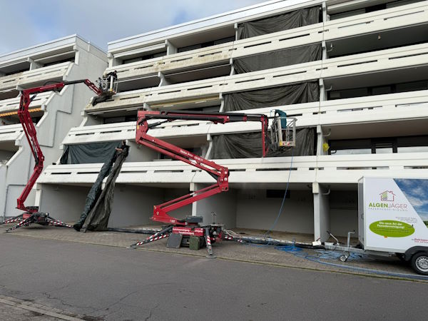 Als Spezialisten für die Reinigung von Immobilienfassaden bieten wir Hausverwaltungen und Wohnungsgenossenschaften eine schonende, nachhaltige und preiswerte Lösung. Mit unseren bewährten Algenjäger-Methoden sorgen wir nicht nur für eine gründliche Reinigung, sondern auch für eine langanhaltende Sauberkeit Ihrer Fassaden.